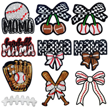 Trendy pullu damalı beyzbol MAMA kiraz yan yay rozetleri topu işlemeli Glitter yamalar DIY demir-on giyim kadınlar için şapka